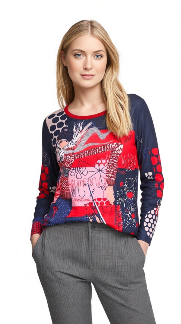 Crew Neck Long Sleeve T-Shirt Digital Boneblo Print