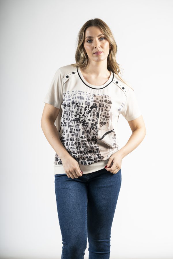 T-shirt Round Neck Band And Buttons On Shoulders Short Sleeves Sublimated “Pater Teste”
